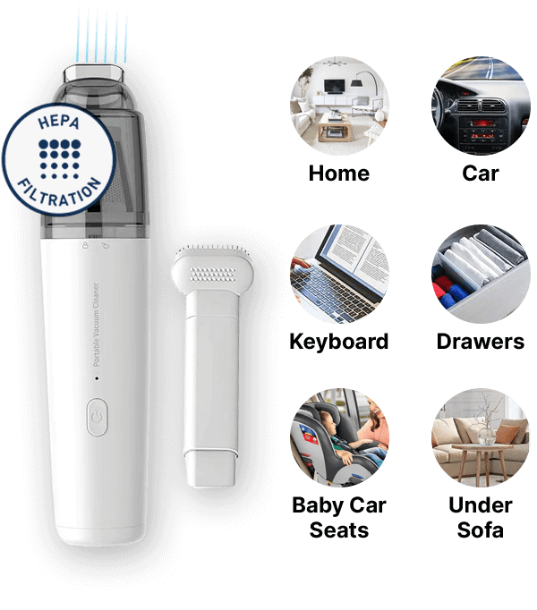 Vortex is a rechargeable & cordless vacuum cleaner that uses 8,000pa powerful suction along with triple layer H11 Hepa filtration to keep your home & car - free from the finest or toughest dirt, on-the-go!