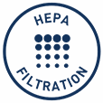 Sucks, traps and removes fine dust particles as small as 0.3 microns.