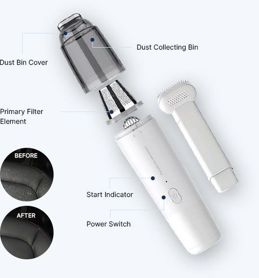 One-click lock to keep it airtight to prevent dust leakage & one-click open to throw the dirt out.